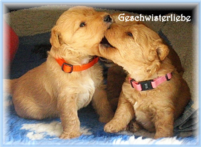 Jungen und Mädchen erkennen. Alle tragen nun kleine Halsbändchen. Diese haben unterschiedliche Farben, sind ganz weich und öffnen sich bei leichtem Zug. So können sich die kleinen Lakies daran gewöhnen, ohne sich beim Spiel darin zu verfangen.